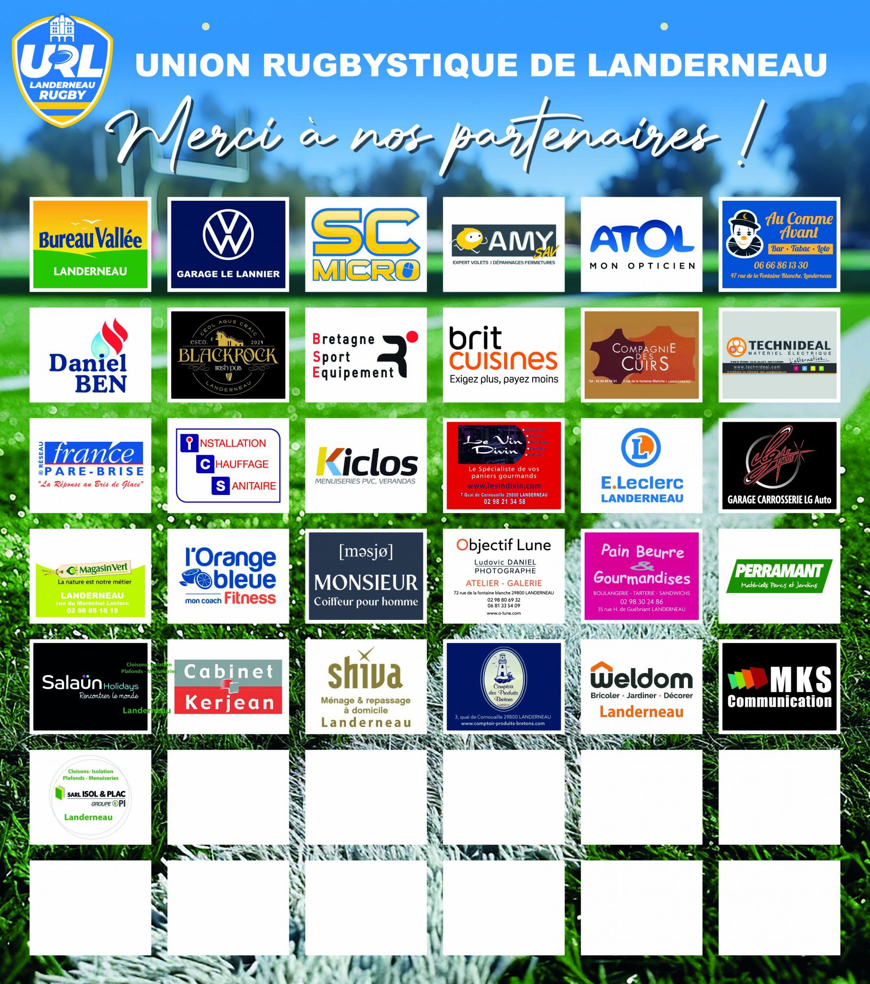 L’Union Rugbystique de Landerneau ne serait rien sans le soutien de ses nombreux partenaires locaux. Et comme ils nous font confiance, à notre tour de vous inviter à leur faire confiance car ils sont le nerf de la vie locale. Merci à eux !